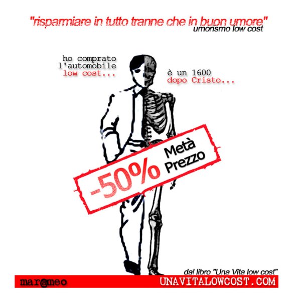 Inoltre, come ho scoperto nella mia esperienza e riportato poi nel libro “UNAVITALOWCOST”, questo stile è sinonimo di ironia… sì perchè vivendo low cost ci si diverte, si fanno nuove esperienze amicizie e la rinuncia iniziale, a beni che poi si rivelano superficiali, lascia spazio a un: risparmio = guadagno = permettersi di più rispetto a prima.